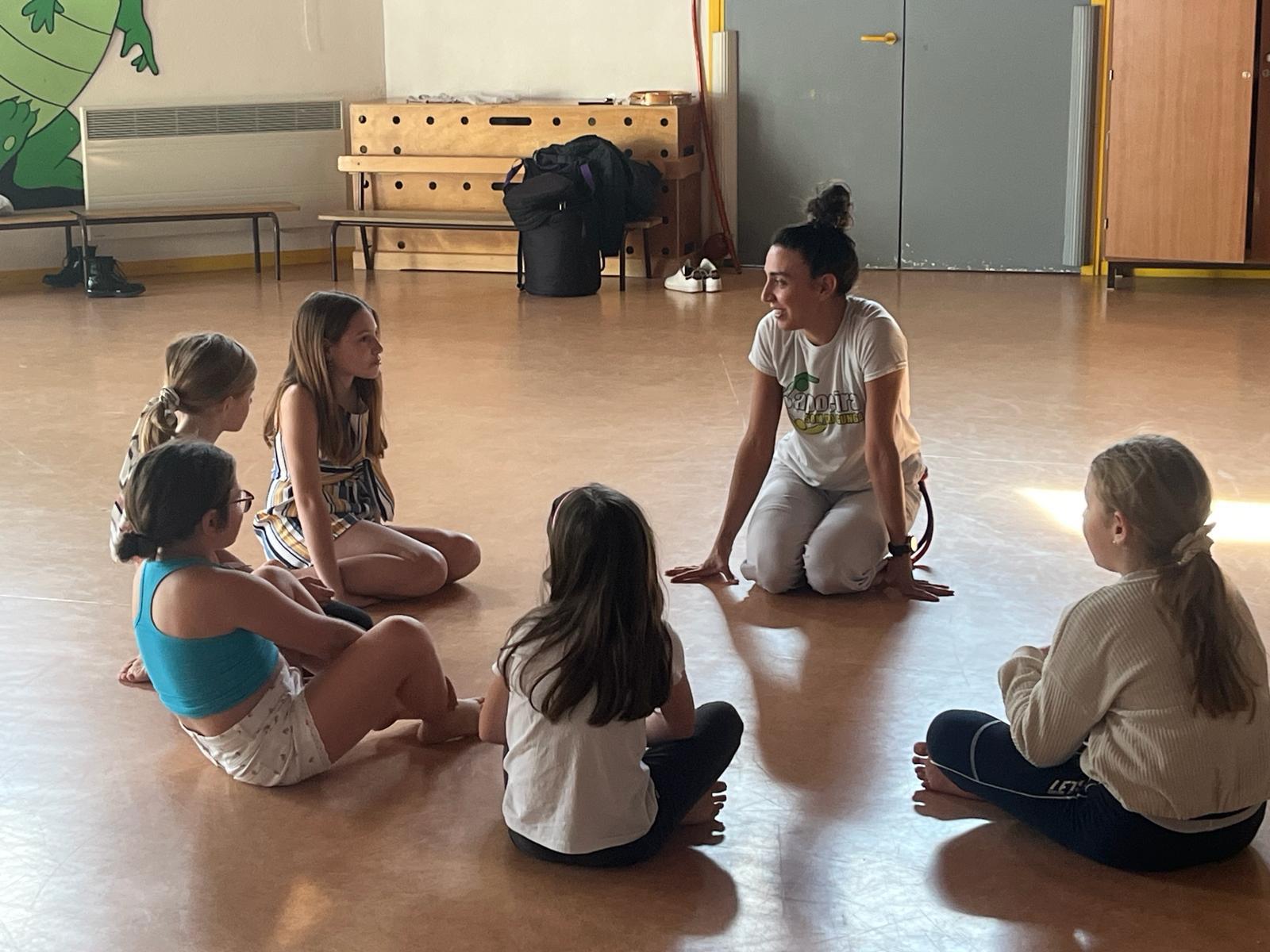 "capoeira pour enfants avec Melanie", une discipline brésilienne qui combine chant, danse, percussions et jeu de combat. À travers ces cours, les enfants découvrent non seulement l'art du mouvement, mais aussi des rituels pour camoufler les moyens de défense, leur apprenant des stratégies subtiles tout en s'amusant. Les ateliers de capoeira pour enfants sont conçus pour développer la coordination, la discipline et la confiance en soi. Danzarina met un accent particulier sur l'importance de la musique et du chant, éléments essentiels qui enrichissent chaque session. Les percussions rythment les mouvements et créent une ambiance vivante et engageante.